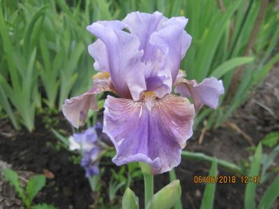 Высота 61 см, Е, с.- светло-сиреневые, тёмно-сиреневая центр. жилка, ф.- светло-сиреневые, сиреневые, на основаниях св. коричневое пятно, б.- желтая, . 03-18-1: (ТАВРИЯ ´ ОЧИ ЧЁРНЫЕ) х´ BREAKING POINT.